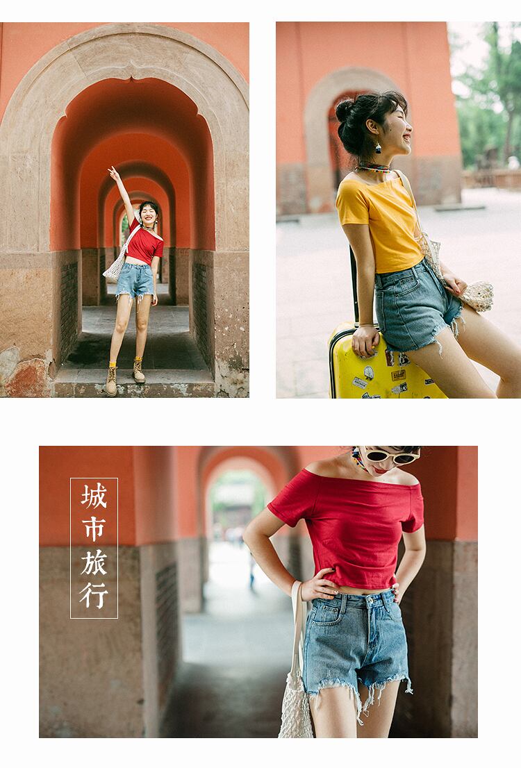 ネットセレブアンカーは、スカートでセクシーなツーショルダートップスとキムヒョナスタイルの半袖Tシャツ女性へそを着ることができます ドリームホーストラベル婦人服54145868301