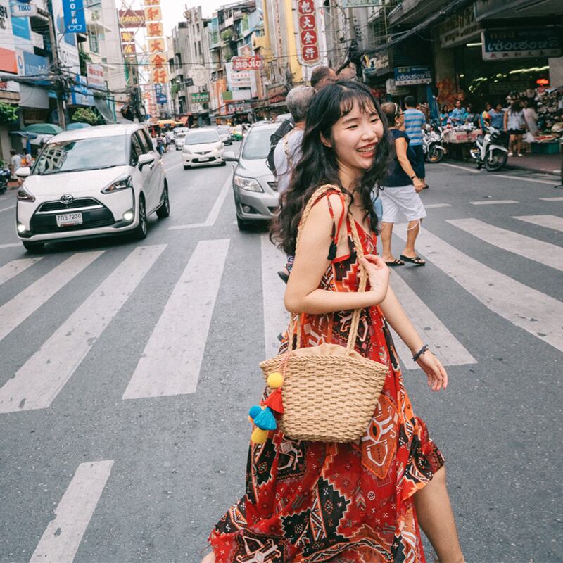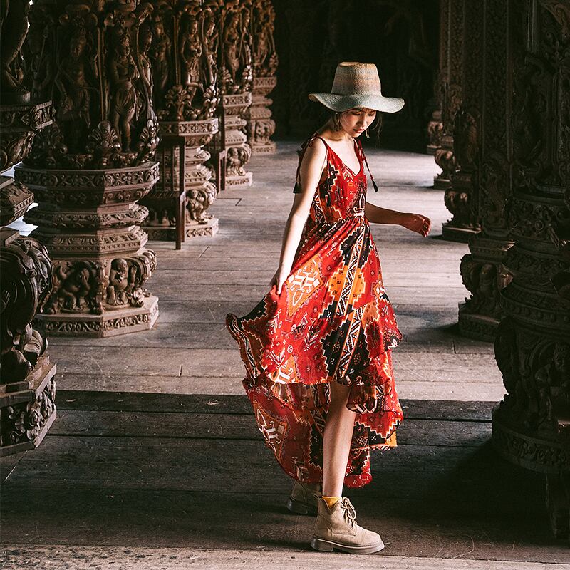 初秋のドレスタイ旅行旅行女性の砂漠po赤いドレスボヘミアンシフォンドレスを着用する ドリームホーストラベル婦人服11479660634