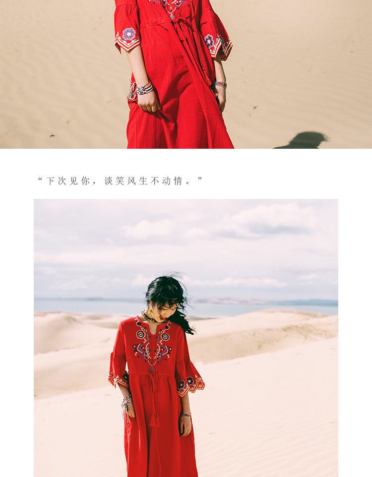 エスニックスタイルのレトロな刺繡ボヘミアンドレス女性の砂漠のpo赤いドレス青海湖の観光スカートの友達 ドリームホーストラベル婦人服25227932864