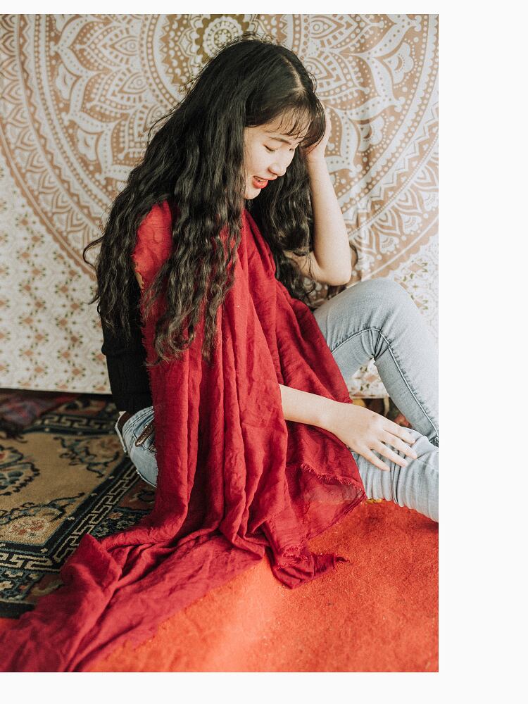 エスニックスタイルのスカーフ女性綿リネン文学ファン旅行ショール女性レトロ赤いスカーフ旅行日焼け止め薄いシルクスカーフ ドリームホーストラベル婦人服22399783667