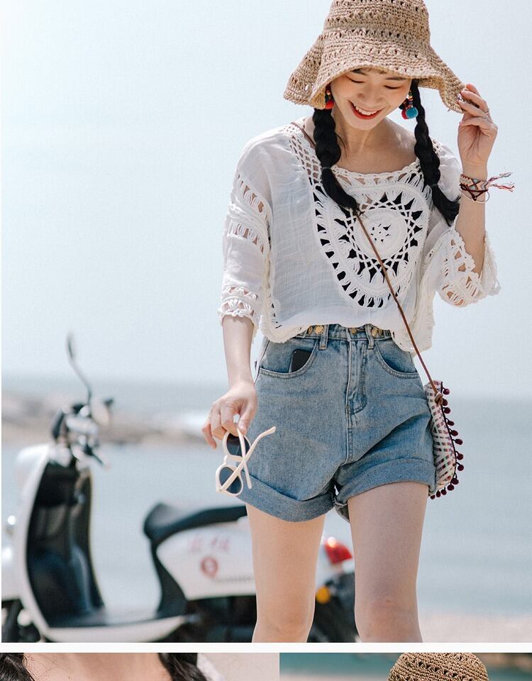 ホリデースタイルの中空ブラウス、海辺の日焼け止めシャツ、ボヘミアンウェア、アウターウェアのセーター、白いスーパーフェアリートップ ドリームホーストラベル婦人服35176539015