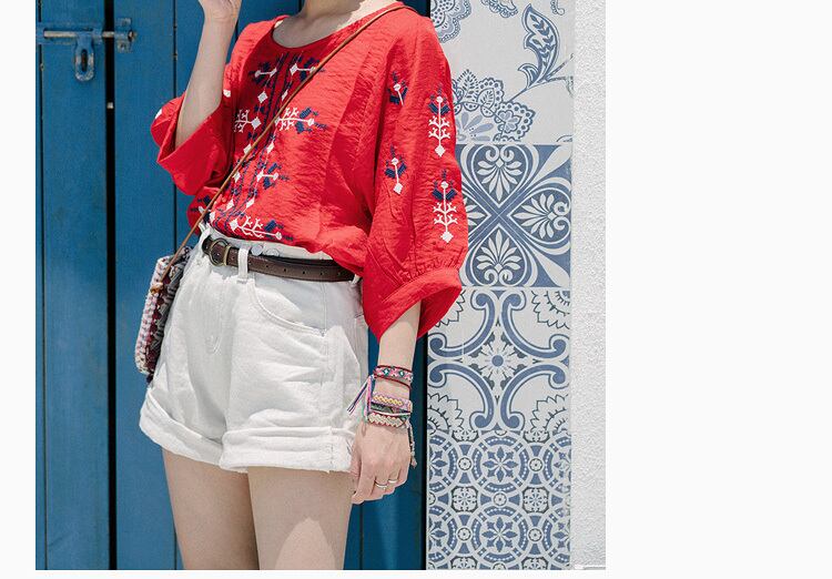 エスニックスタイルの刺繍入りブラウストラベル、ブラウスの着用、大きなサイズのバットスリーブ、太った姉妹の日焼け止めシャツ、新しい文体 ドリームホーストラベル婦人服44800198544