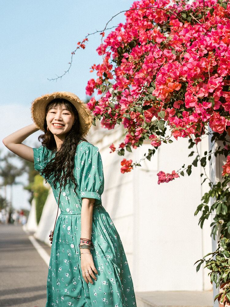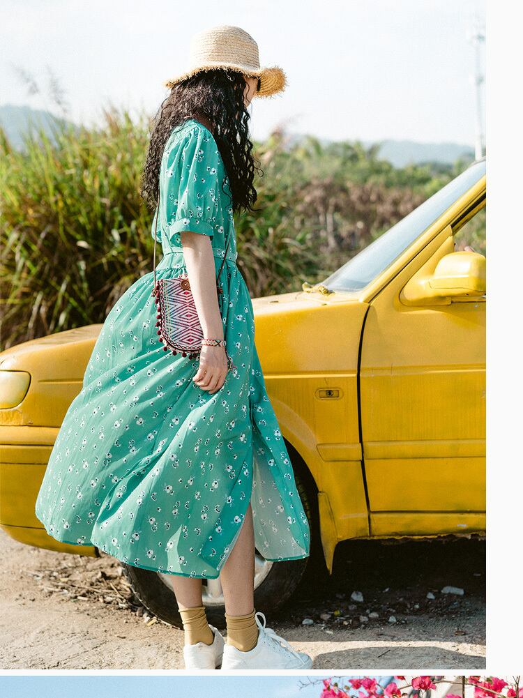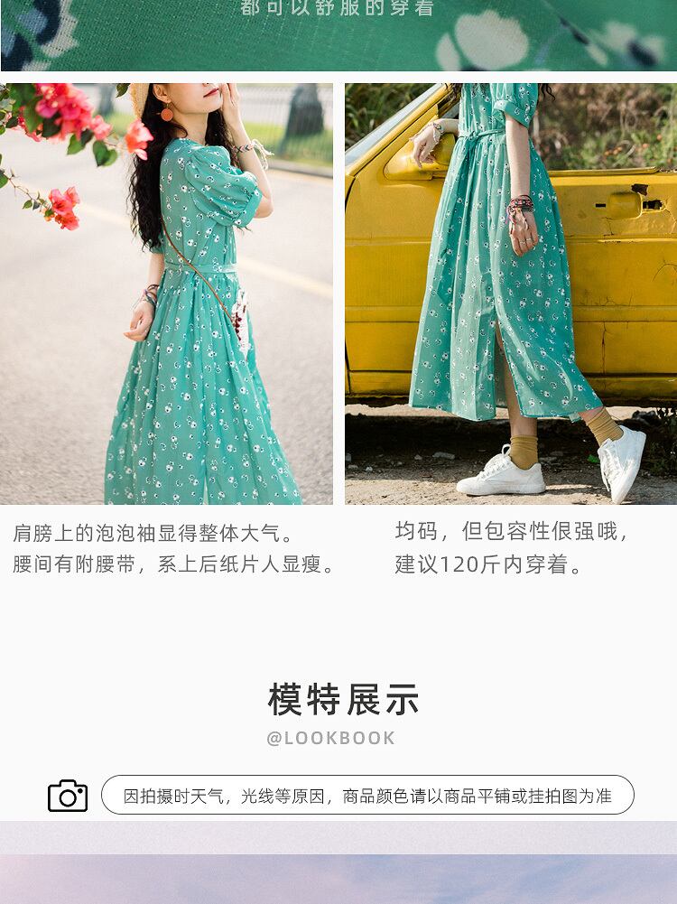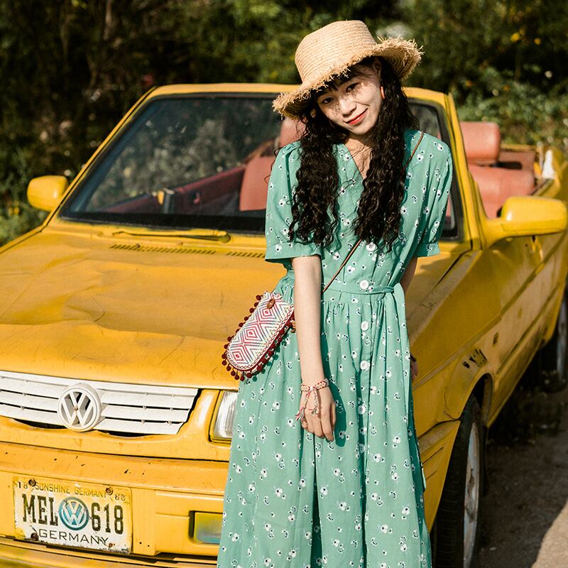 バケーションスタイルのドレスVネックボヘミアン半袖ロングスカートシーサイドフレンチフローラルラージスイングスーパーフェアリーロングスカート ドリームホーストラベル婦人服39626040270