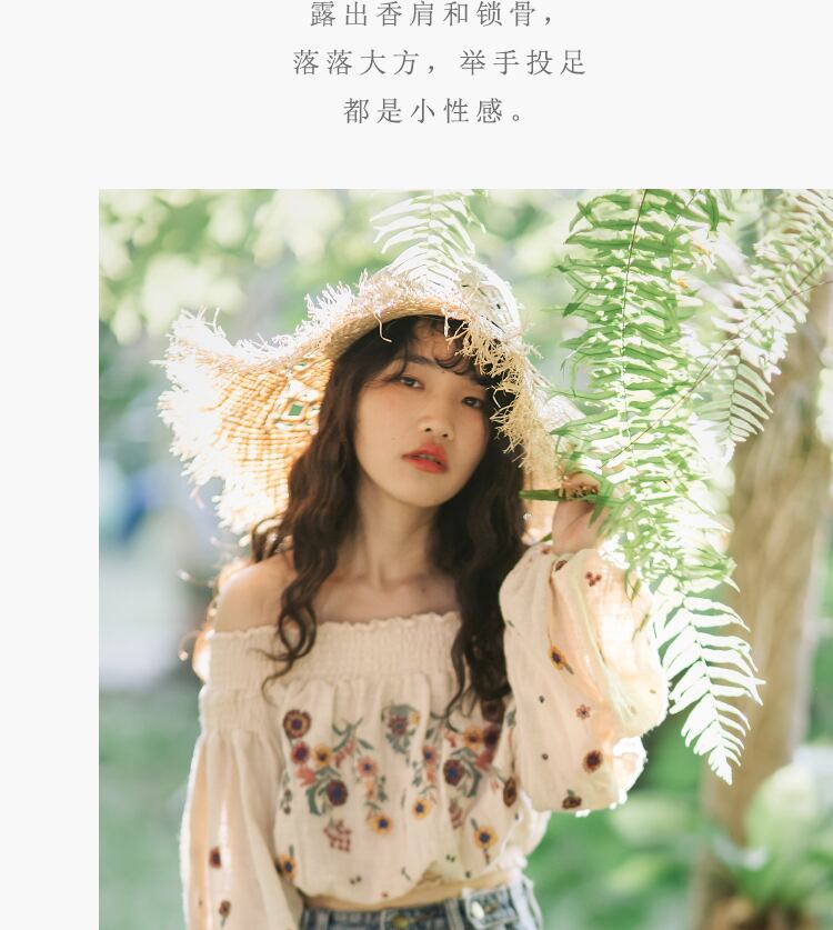 ボヘミアンスタイルのコットンとリネンの刺繍ワンショルダートップレディースストラップレスショートスーパーフェアリー2019新しいタイのホリデーウェア ドリームホーストラベル婦人服91684186820