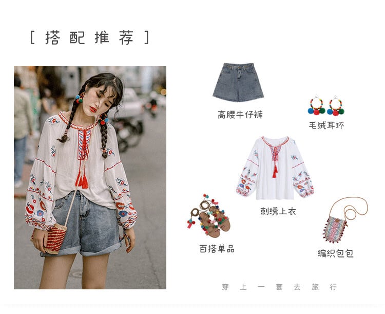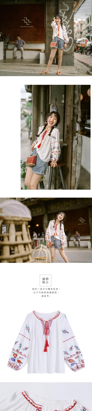 タイの休暇旅行服旅行友達エスニックスタイル長袖シャツルーズ刺繡トップ女性2019新しい ドリームホーストラベル婦人服31741534375