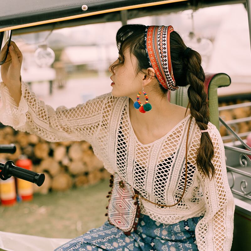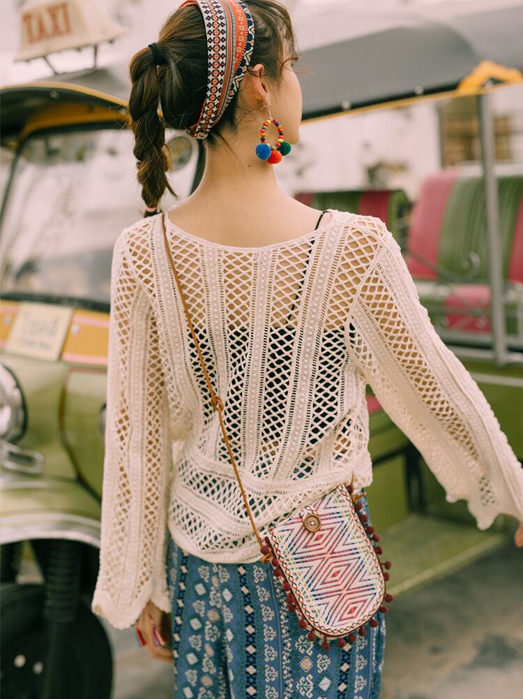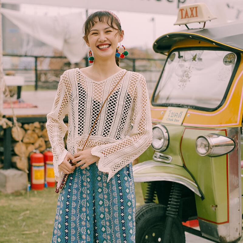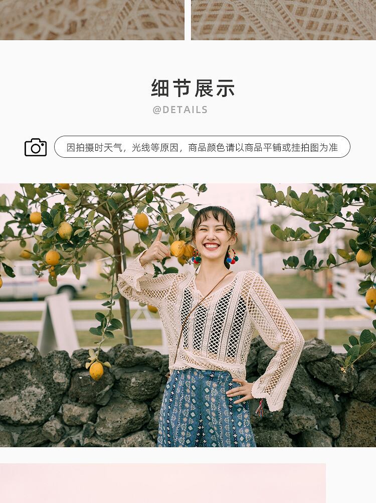 ニットの中空長袖日焼け止めブラウス、ゆったりとしたVネック、短い痩身ブラウス、女性の薄いスタイルの休暇 ドリームホーストラベル婦人服56676945654