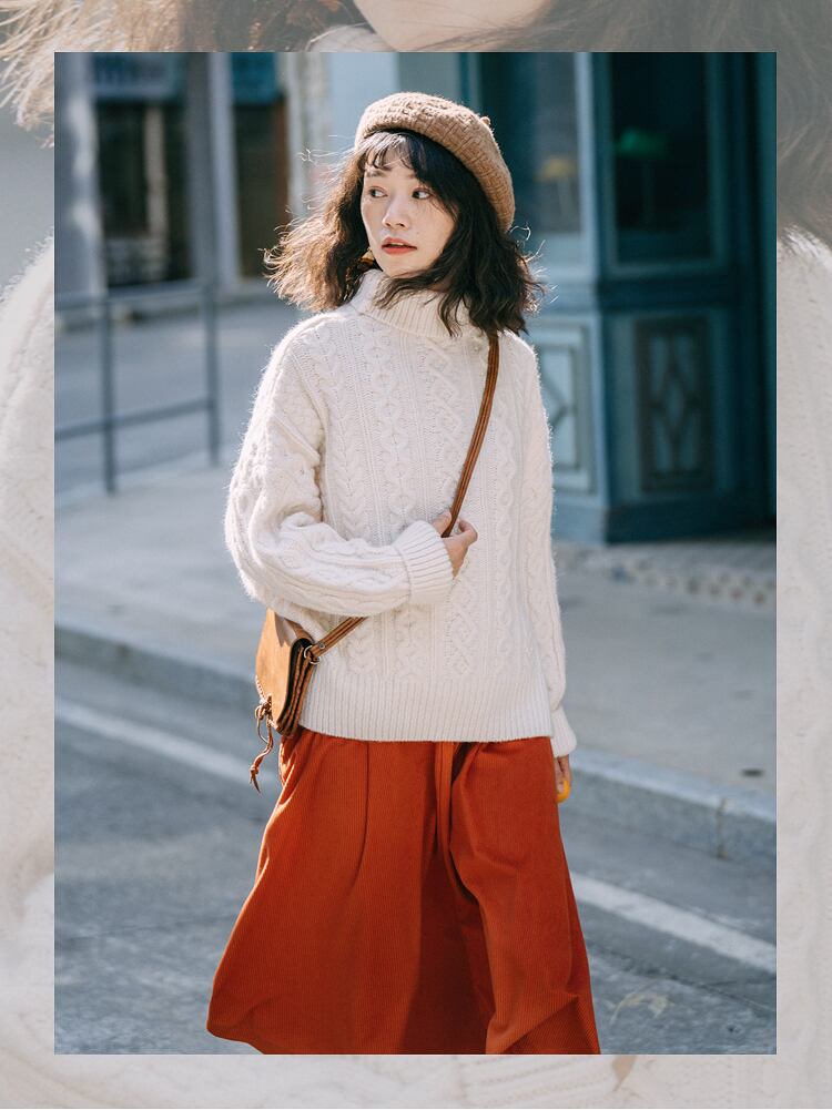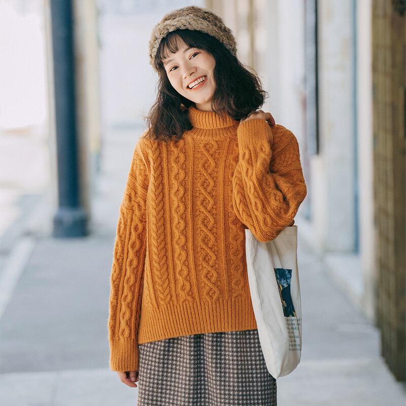 ドリームホースタートルネックセーター厚く冬暖かいツイストレトロセータールーズ怠惰な重工業ese ドリームホーストラベル婦人服57806452130
