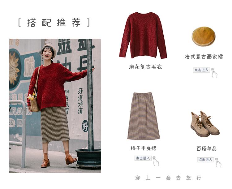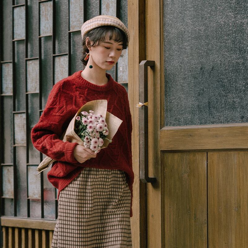 ドリームホースレッドセーターツイストレトロ秋冬ルーズウォームセーターレイジープルオーバーラウンドネック新品 ドリームホーストラベル婦人服46389322449