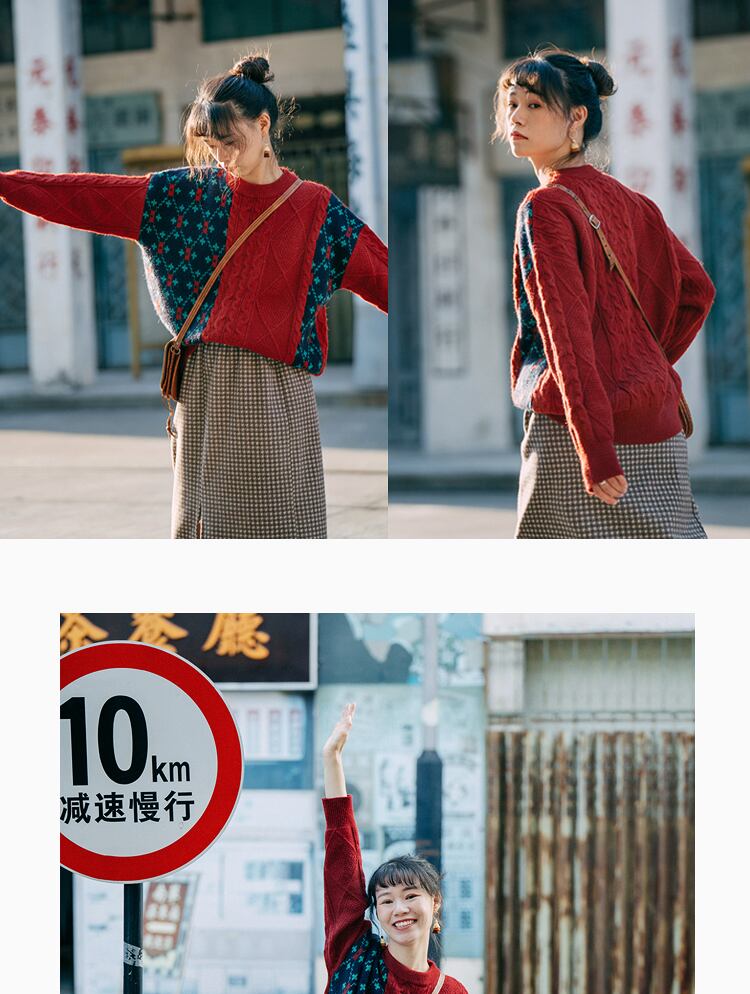 ドリームホースレトロセーターヴィンテージプルオーバーセーターラウンドネックツイスト秋冬エスニックスタイル女性アウターウェアニュースタイル ドリームホーストラベル婦人服85663703792