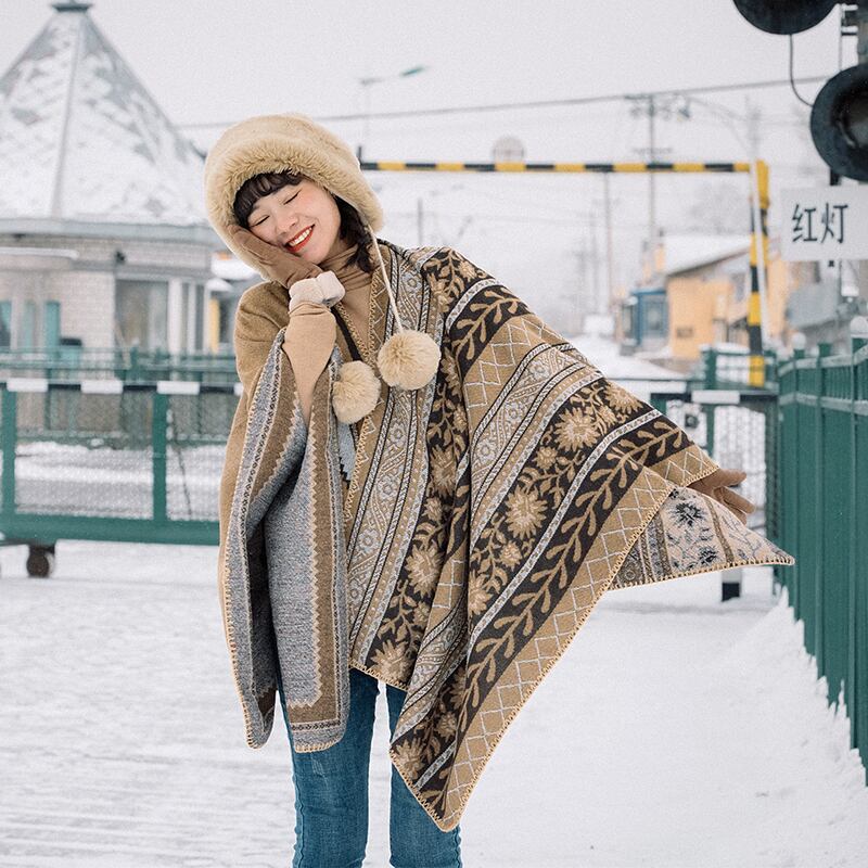 エスニックスタイルのショール雲南とチベットの休暇の暖かさと厚みのある外側のレトロなマントジャケットのデュアルユース旅行 ドリームホーストラベル婦人服3187322827