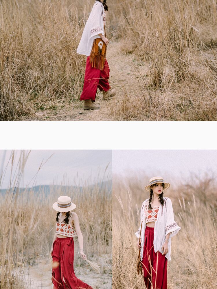 スタイルエスニックレッドハイウェストウェストルーズロングサマー シフォン 夏物 ビーチ ドリームホーストラベル婦人服15994507307