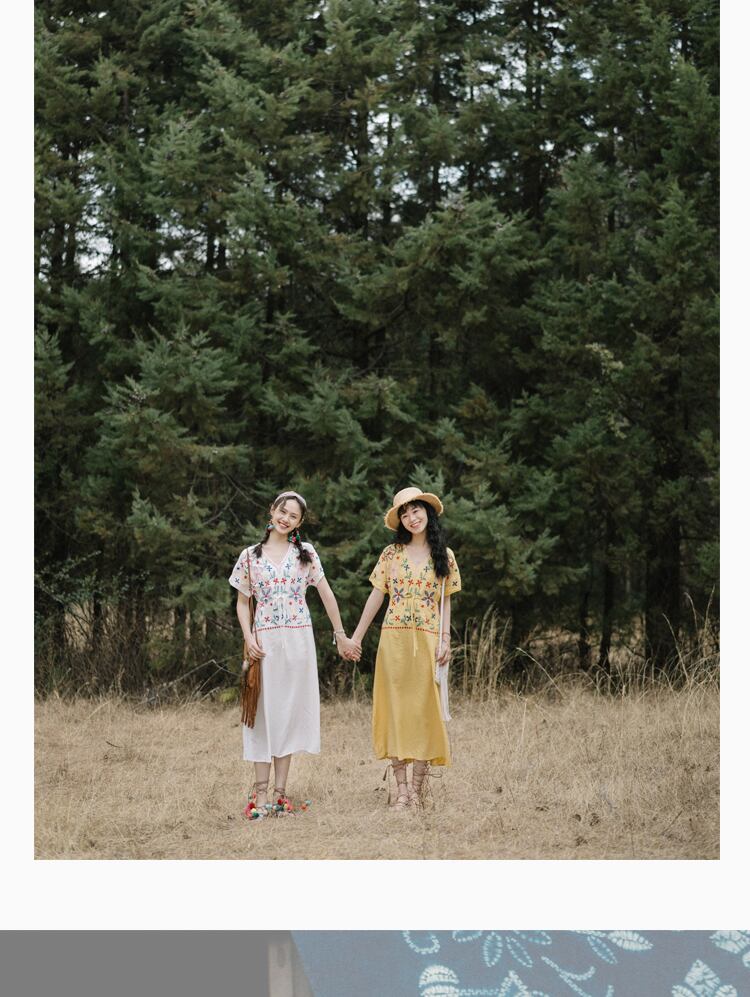 エスニックスタイルドレス Flowerデザイン 刺繍スカート ウェストサマー 大人ガーリー スウィート キュート カジュアル 夏物 フラワーデザイン ドリームホーストラベル婦人服6932465526