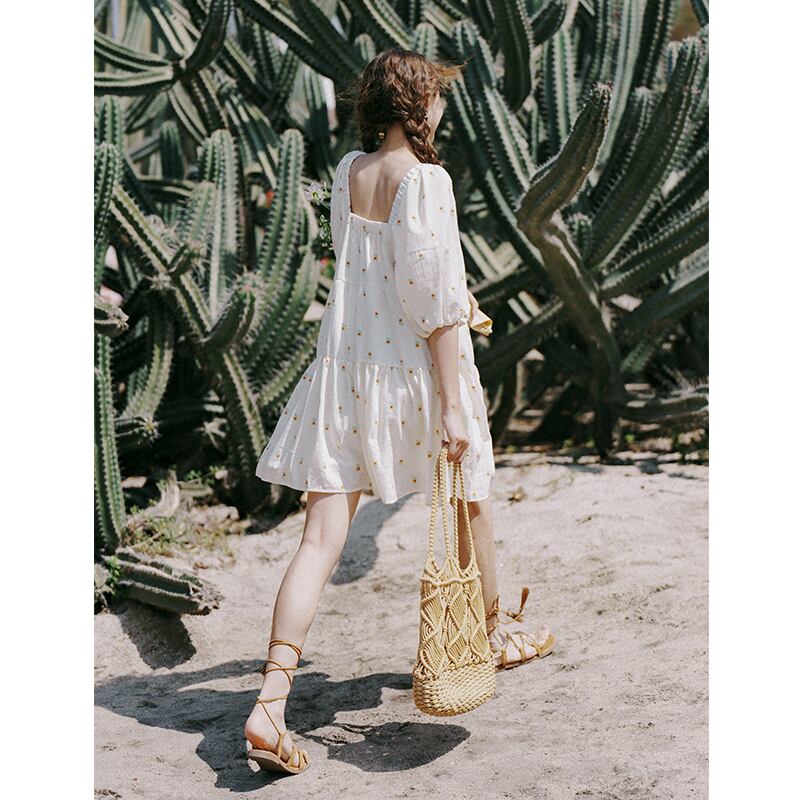 フローラルスカート スリーブサマードレス ショート 大人ガーリー スウィート キュート カジュアル 夏物 花柄 スクウェア ドリームホーストラベル婦人服3996693896