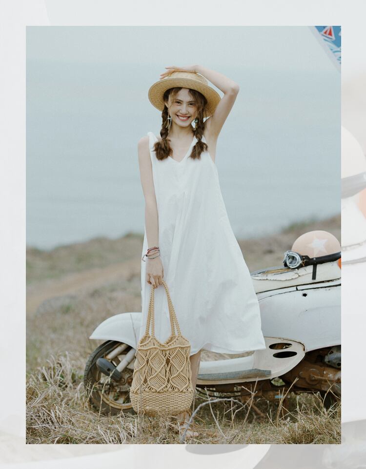 サマーホワイトドレス ノースリーブ 夏物 ビーチ ドリームホーストラベル婦人服98630723776