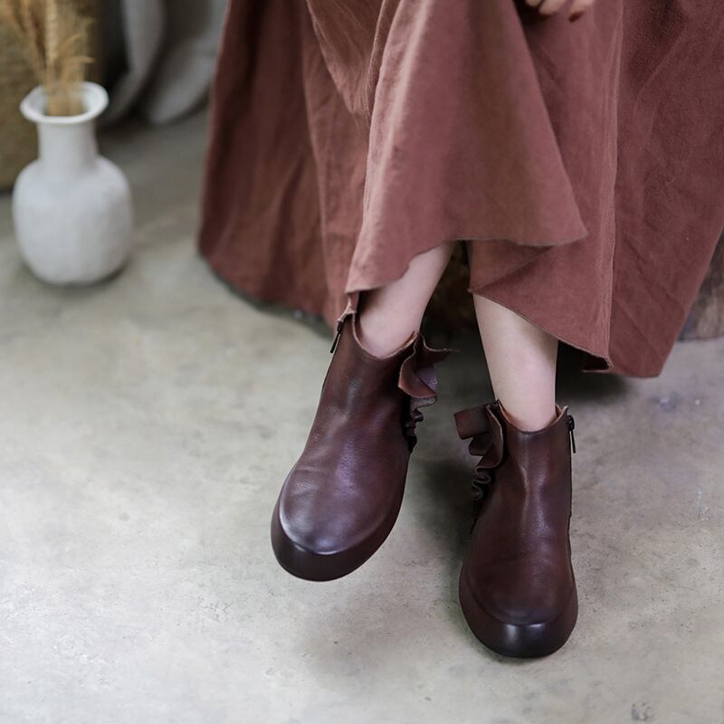 レザーサイドジッパースタンダードレースショートブーツオータムウィンター 靴 シューズ レトロ 秋物 冬物 Yiranxuaディースワード69277994491
