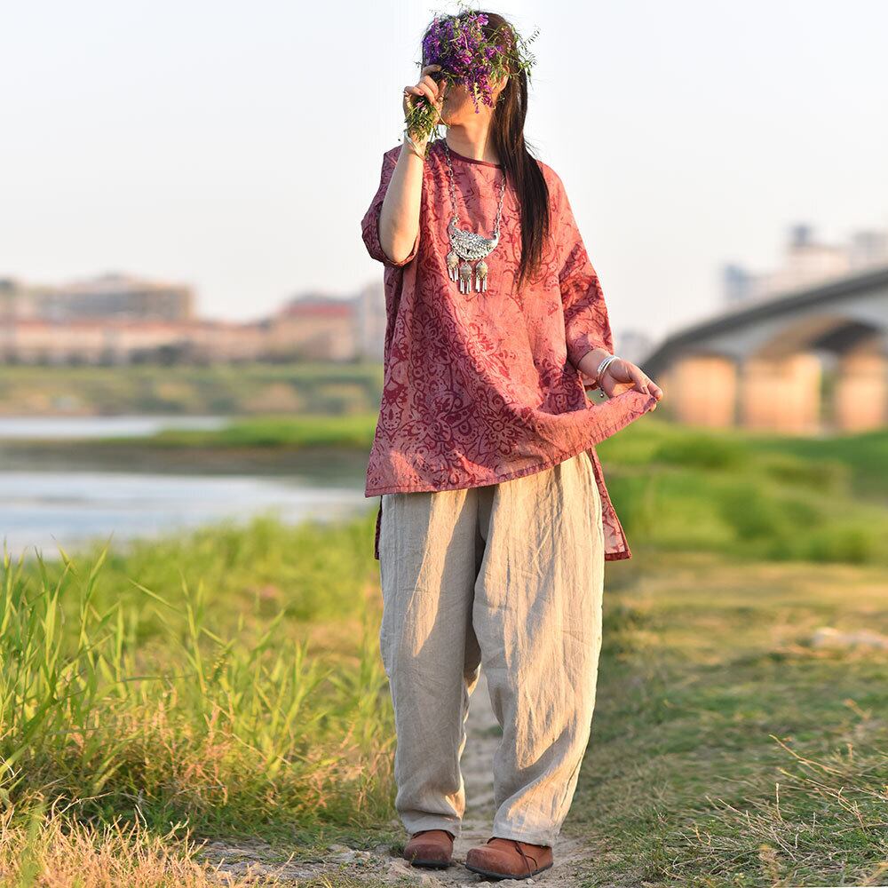 スタイルプリントシャツ スタンダードブラウス レトロ サマー 夏物 フラワーデザイン Yiranxuaディースワード49369538347