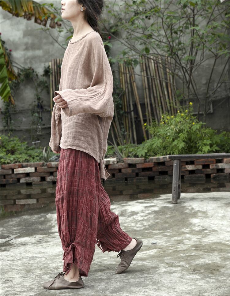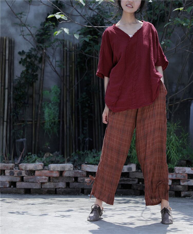 格子柄ルーズサマー コットン レース 夏物 レースアップ Yiranxuaディースワード89064925456