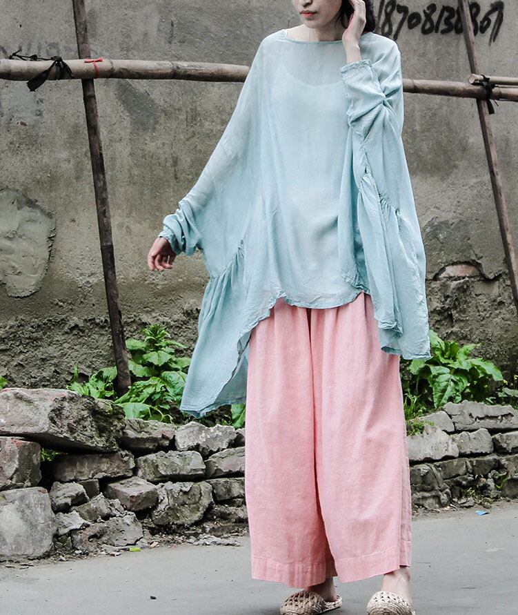 スプリングサマールーズプルオーバー トップス ロング コットン 春物 夏物 シルク Yiranxuaディースワード1301541448