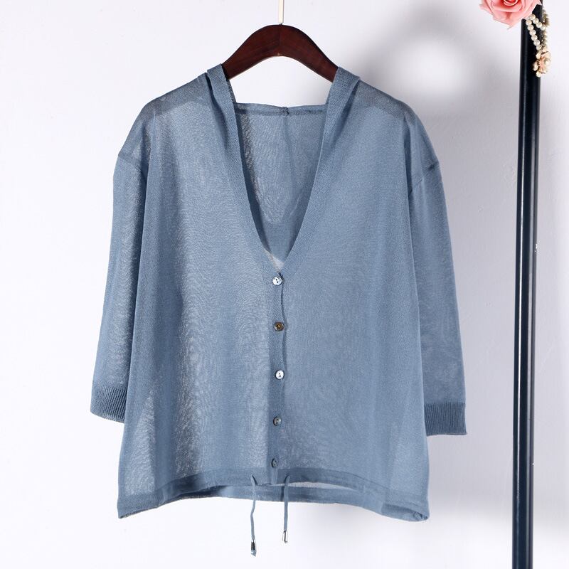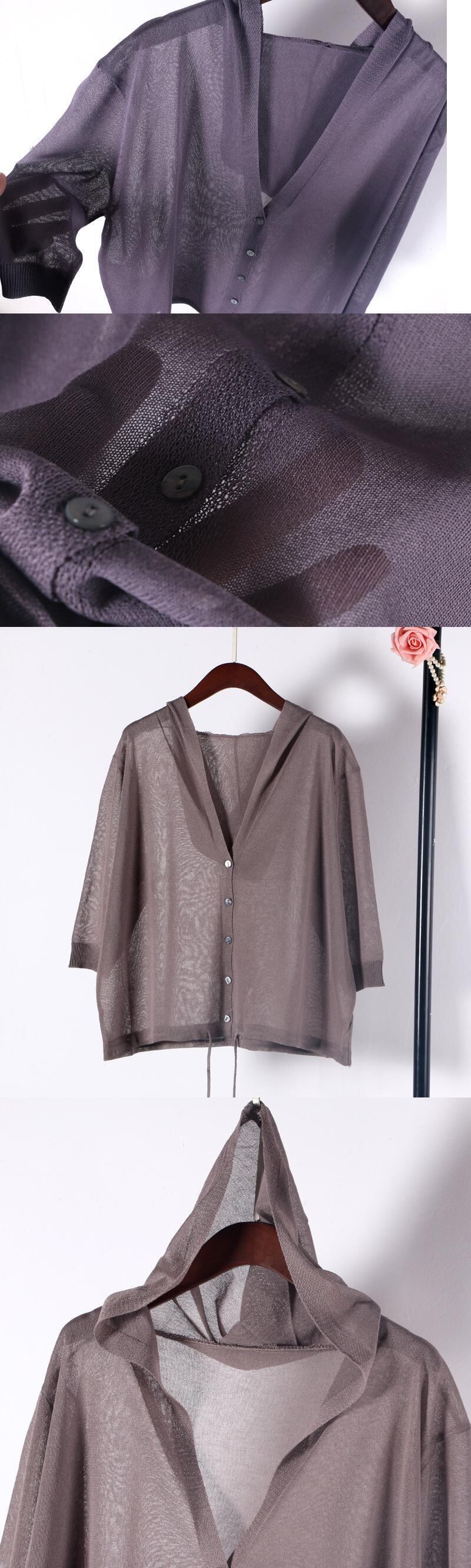 サマールーズカーディガン薄手フードショートコート ニットシャツ 夏物 Yiranxuaディースワード68289750722