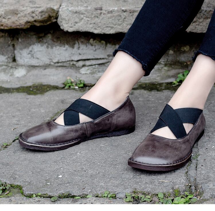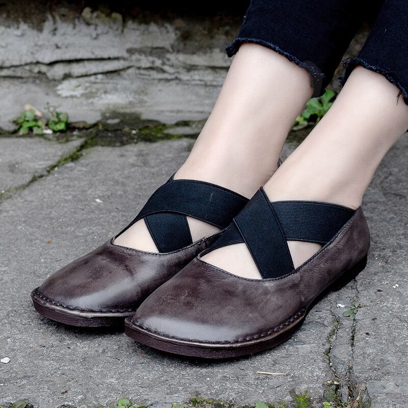 スタンダードレザースプリングサマーストレッチシングル 靴 シューズ レトロ エラスティック 伸縮 春物 夏物 ラウンドトー Yiranxuaディースワード74399501667