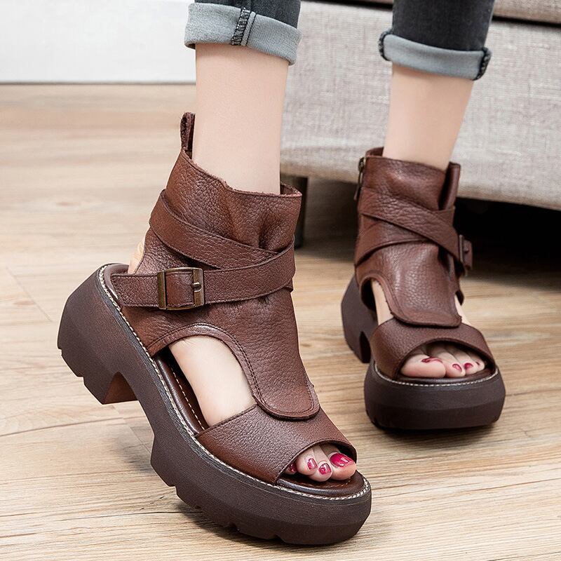 サンダルサマーエスニックスタイルレザーサイドジッパーブーツレディース 靴 シューズ 夏物 Yiranxuaディースワード85489950660