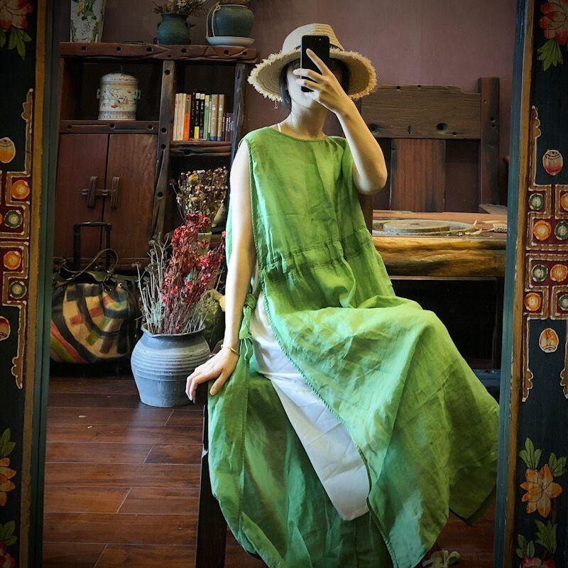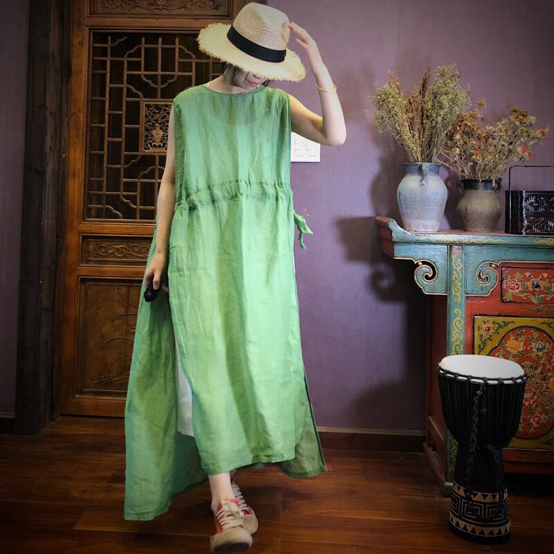 スリットギャザーノースリーブドレス Yiranxuaディースワード14990445863