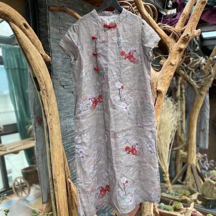 スタンダードプリントバックルルーズドレス レトロ ピュア Yiranxuaディースワード83709104123