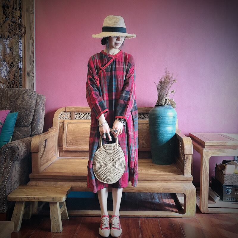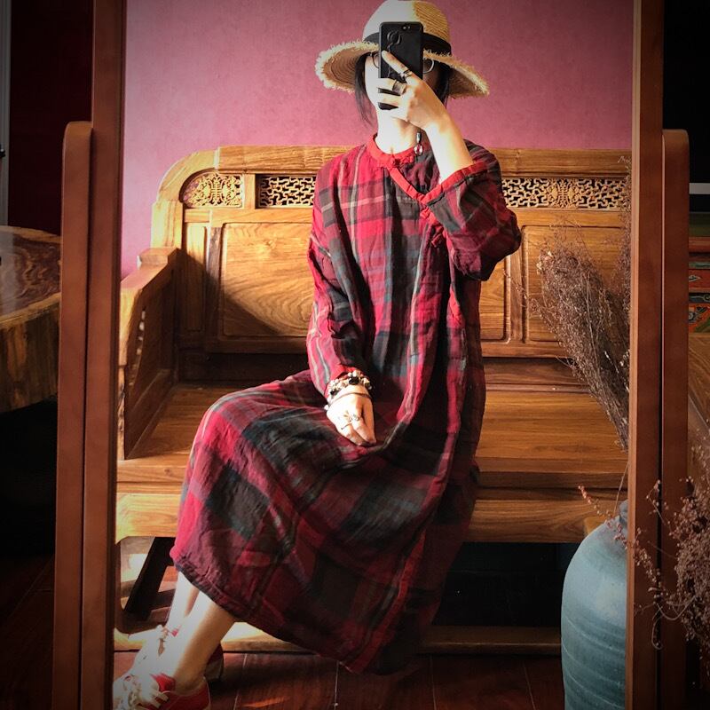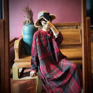 スタンダード格子柄ルーズドレス レトロ Yiranxuaディースワード6612939338