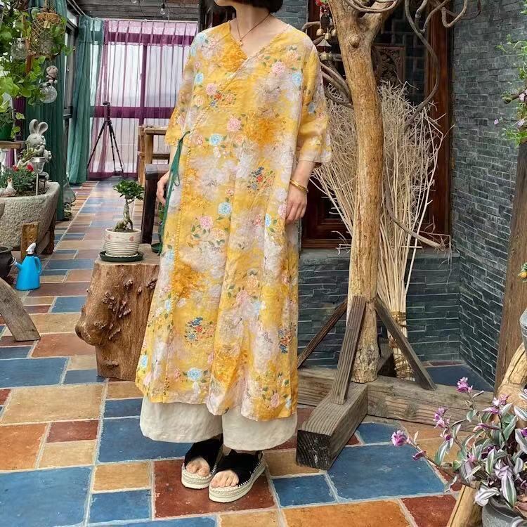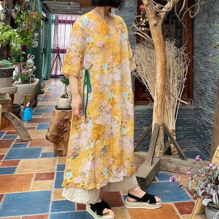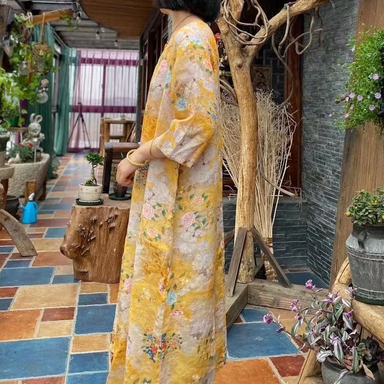 スプリングスタンダードプリントルーズドレス レトロ 春物 Yiranxuaディースワード44181842964