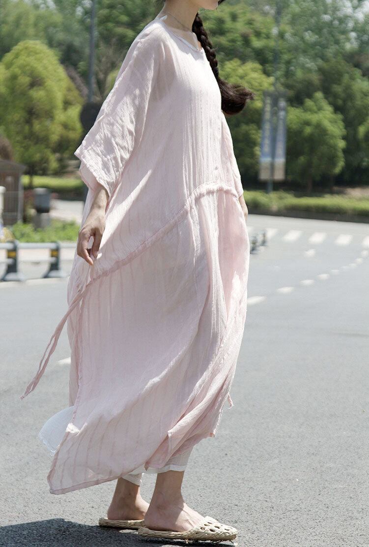 ストライプスリットスカート ルーズ薄手ドレス コットン Yiranxuaディースワード16462252935