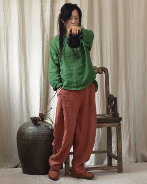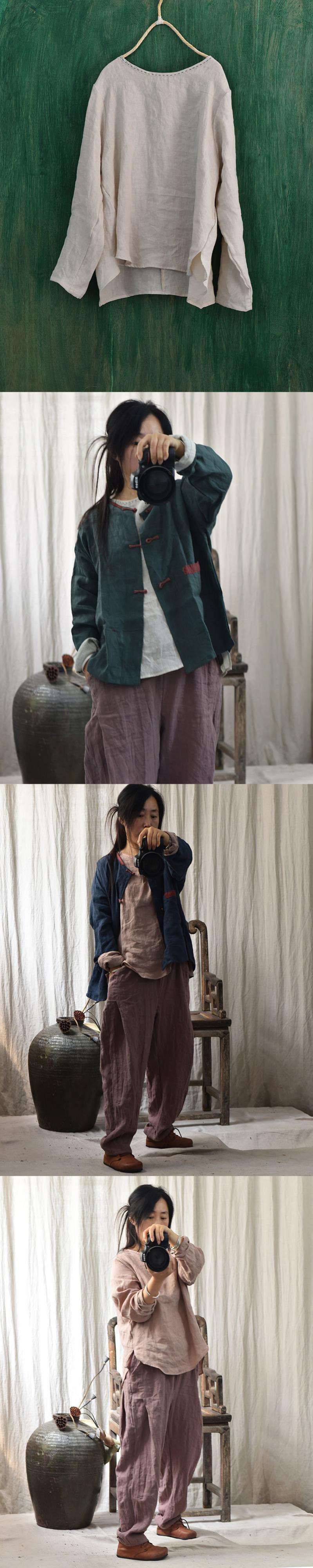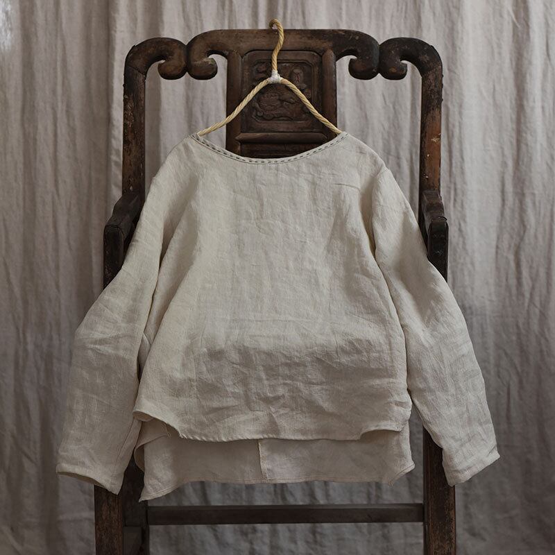 スプリングオータムスタイルシャツ ルーズラウンドネックスタンダード レトロ 春物 秋物 Oネック Yiranxuaディースワード94223601124