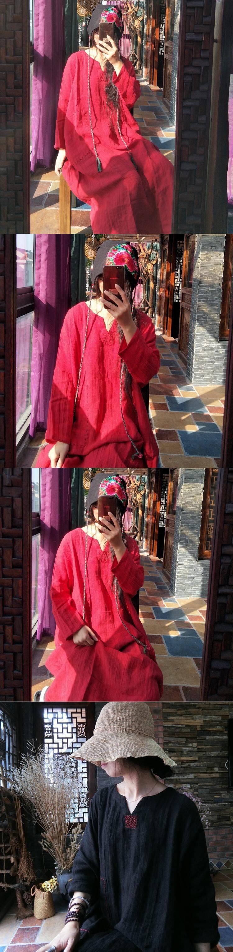 スプリングスタンダードルーズドレス レッド レトロ 刺繍 春物 ピュア Yiranxuaディースワード64805033745