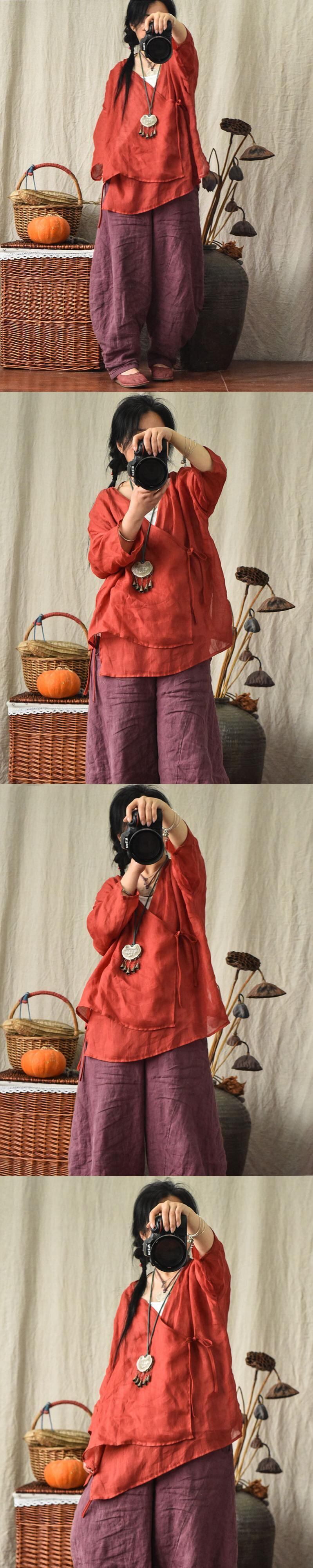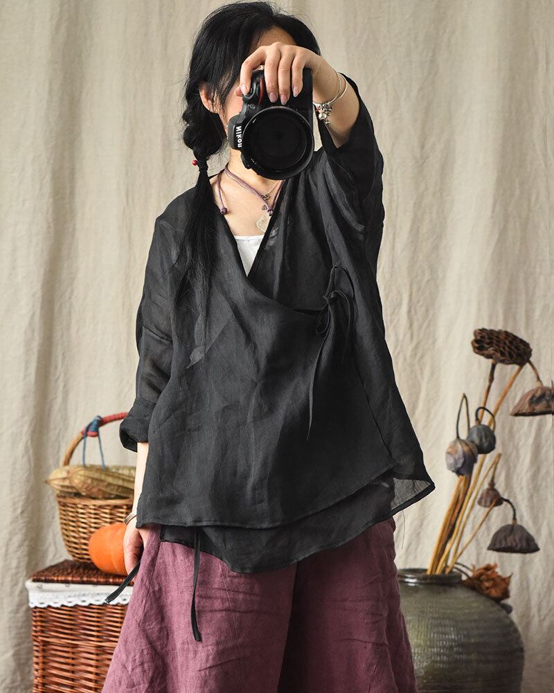 カーディガンブラウス ルーズショート レース レースアップ Yiranxuaディースワード68926750669
