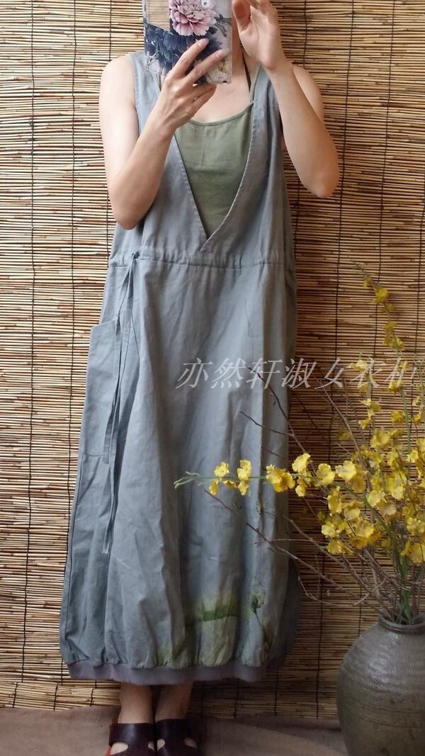 スプリングスタイルカラーVネックドレス コットン 春物 Yiranxuaディースワード73830612064