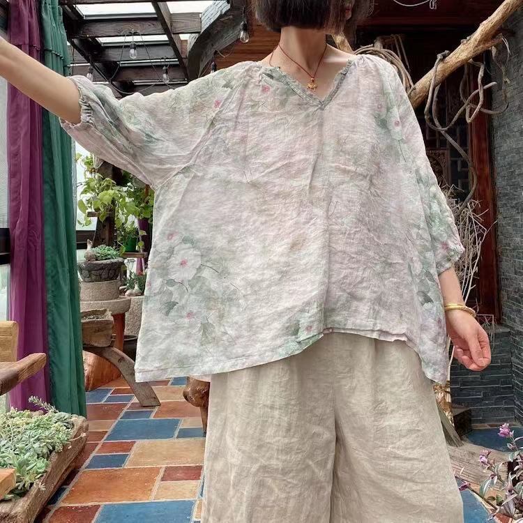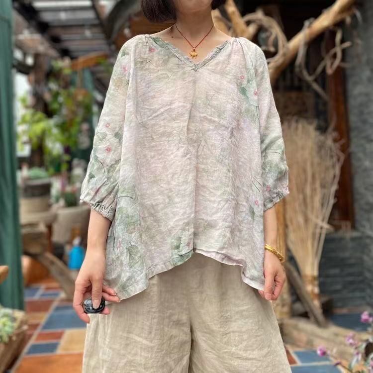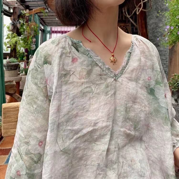 スプリングプリントルーズシャツ 春物 ピュア Yiranxuaディースワード71597748840