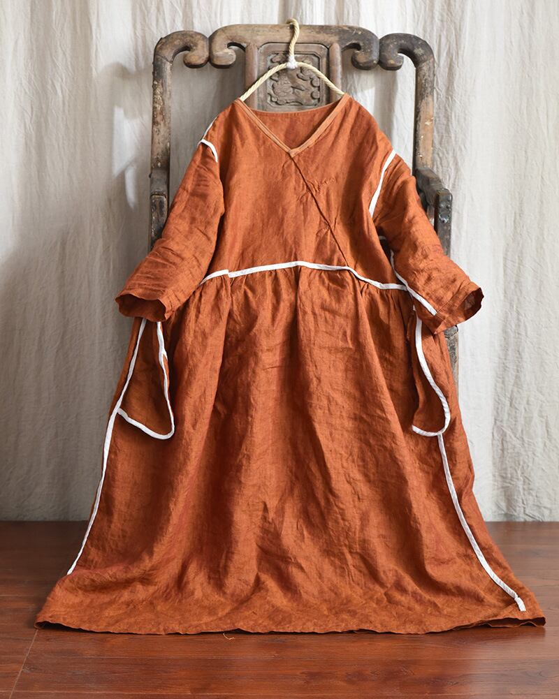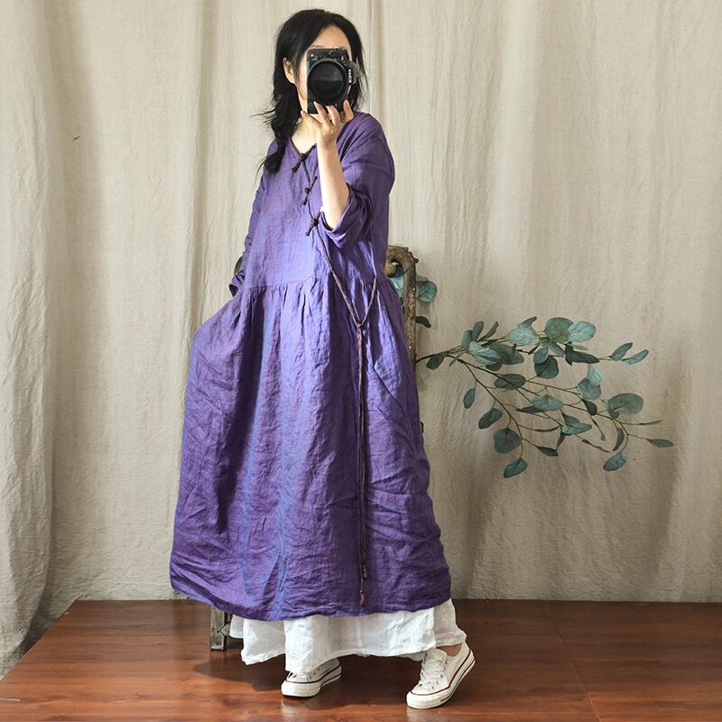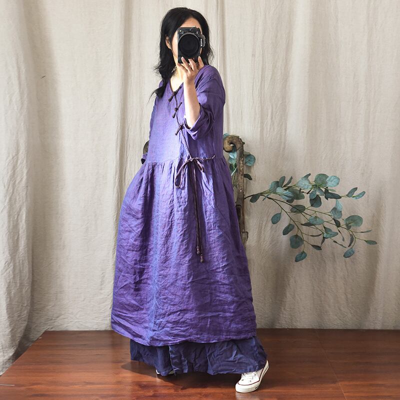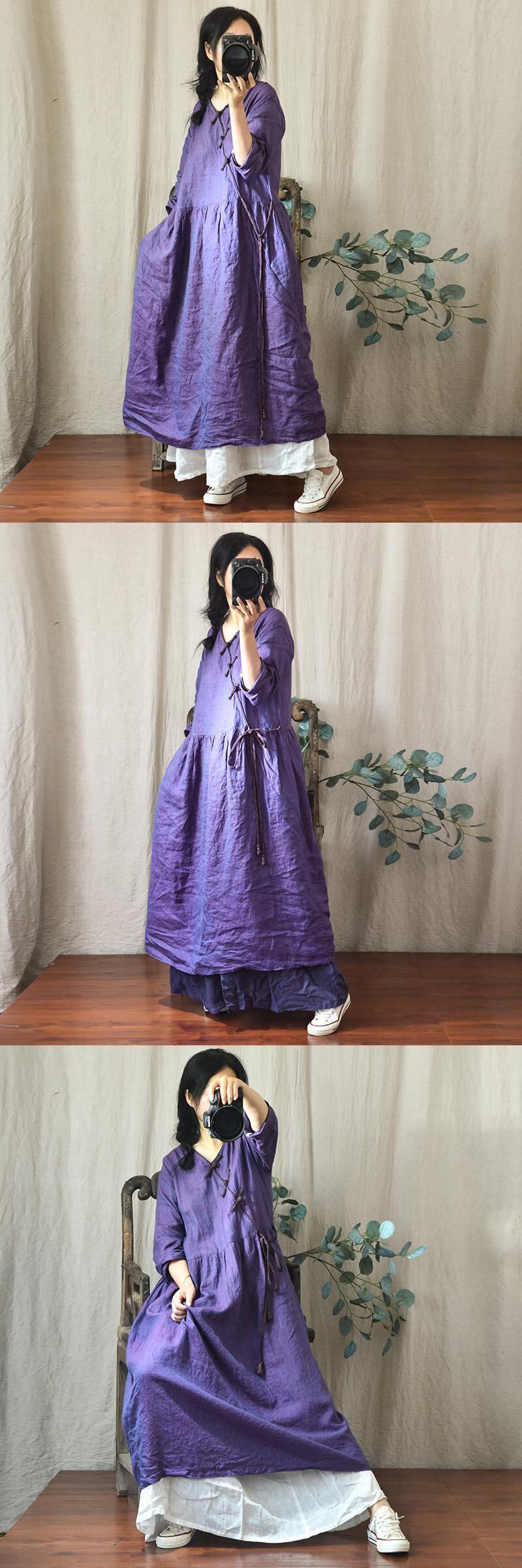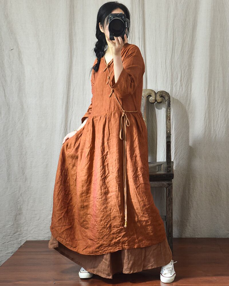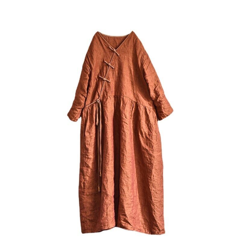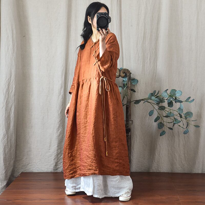 サマーオータムバックルドレス Vネックルーズ薄手ロングスカート スプリング 春物 夏物 秋物 Yiranxuaディースワード93797808873