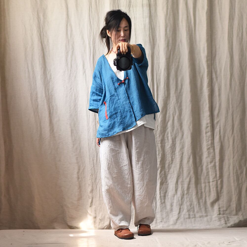 サマーVネックカーディガンシャツ カラーコート コットン 夏物 Yiranxuaディースワード2913804395