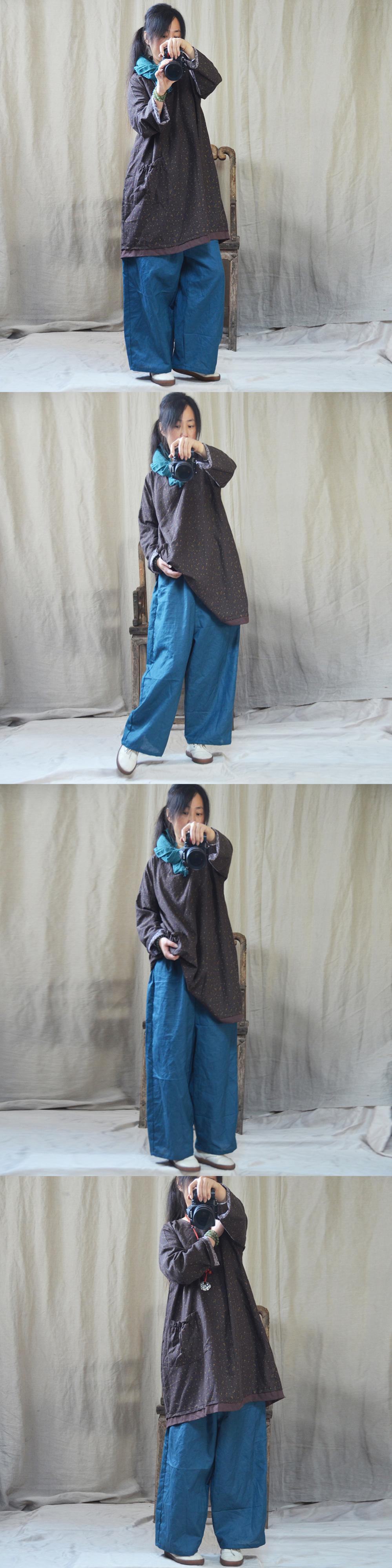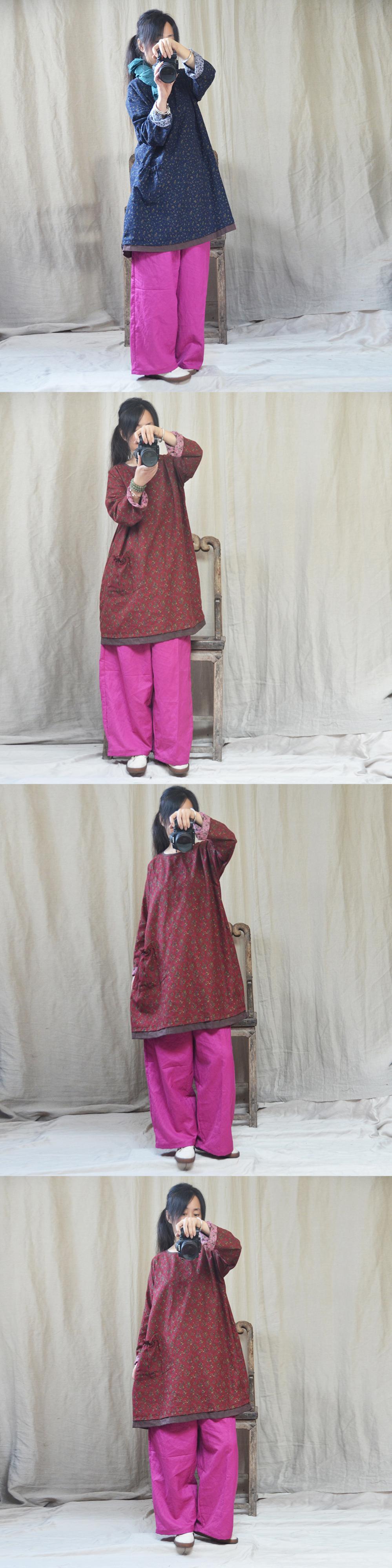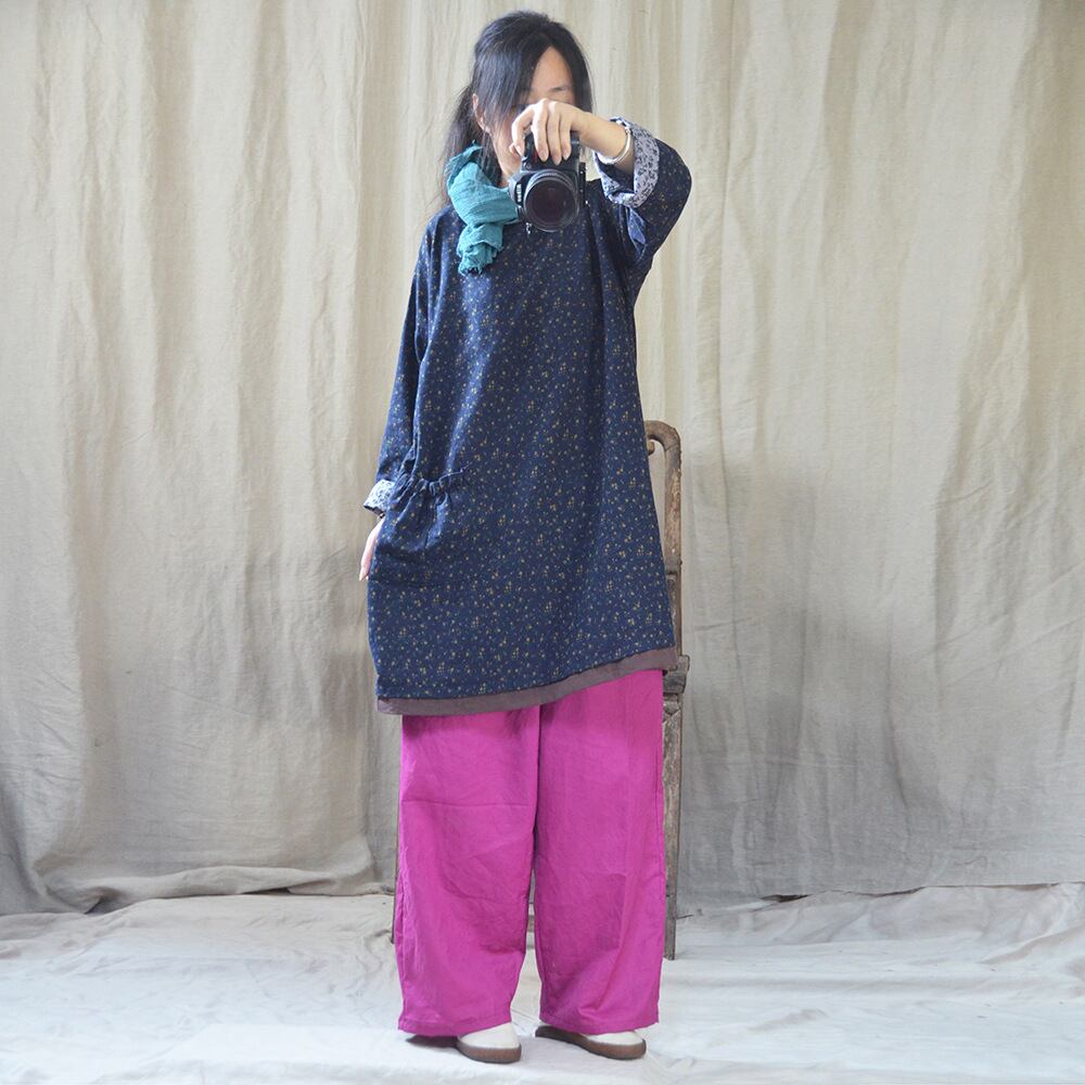 オータムスタイルルーズフローラルパターンシャツ ドレス レディースロング コットン 長袖 大きめサイズ 秋物 花柄 Yiranxuaディースワード25737556415