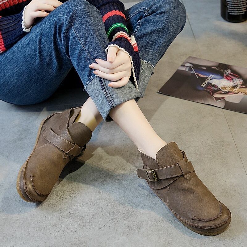 オータムウィンタースタンダードベルト バックルレザーカジュアルショートブーツ レトロ 靴 シューズ 秋物 冬物 ハーネス Yiranxuaディースワード53064145570