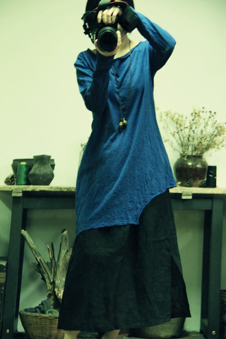 スタイルニットアシンメトリーTシャツ ロング コットン Yiranxuaディースワード61660075525