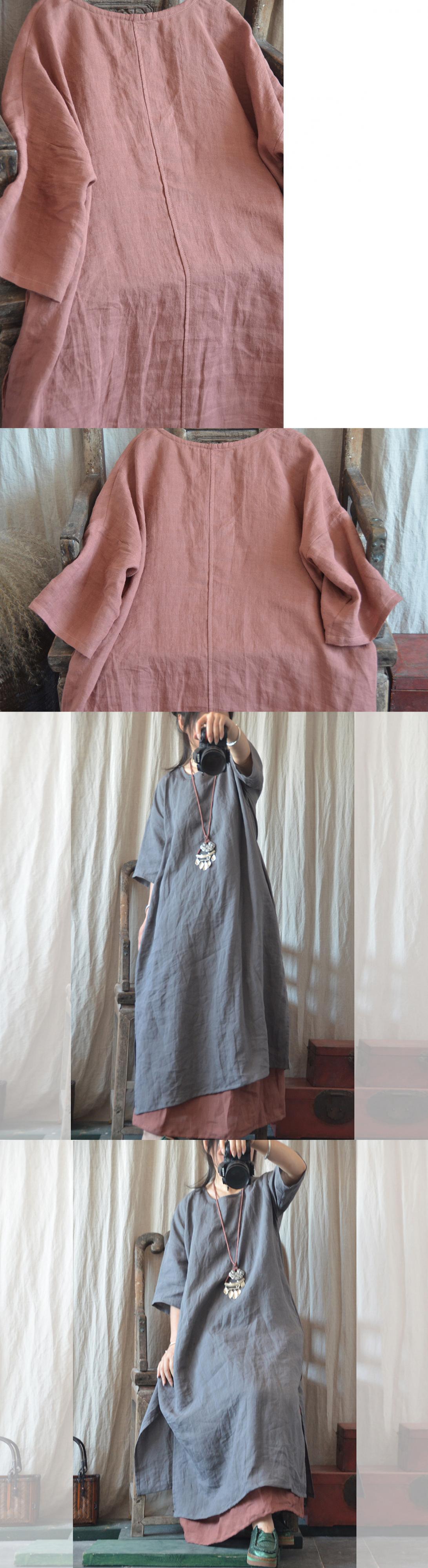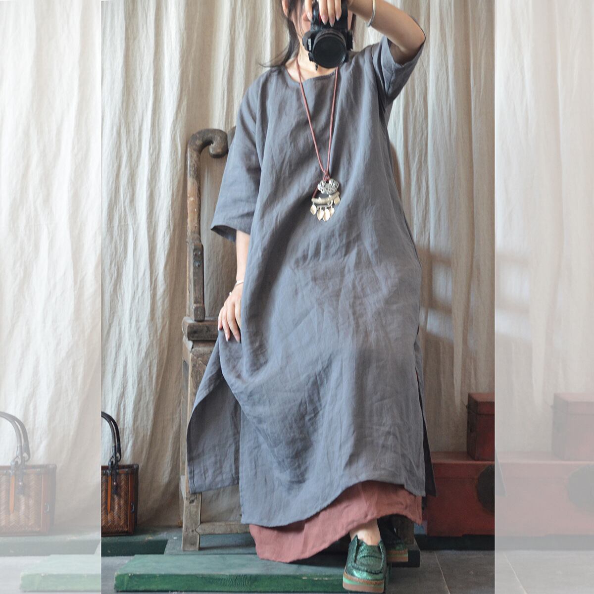 サマースタンダードラウンドネックルーズロングワンピースドレス レトロ 夏物 Oネック Yiranxuaディースワード85029392710