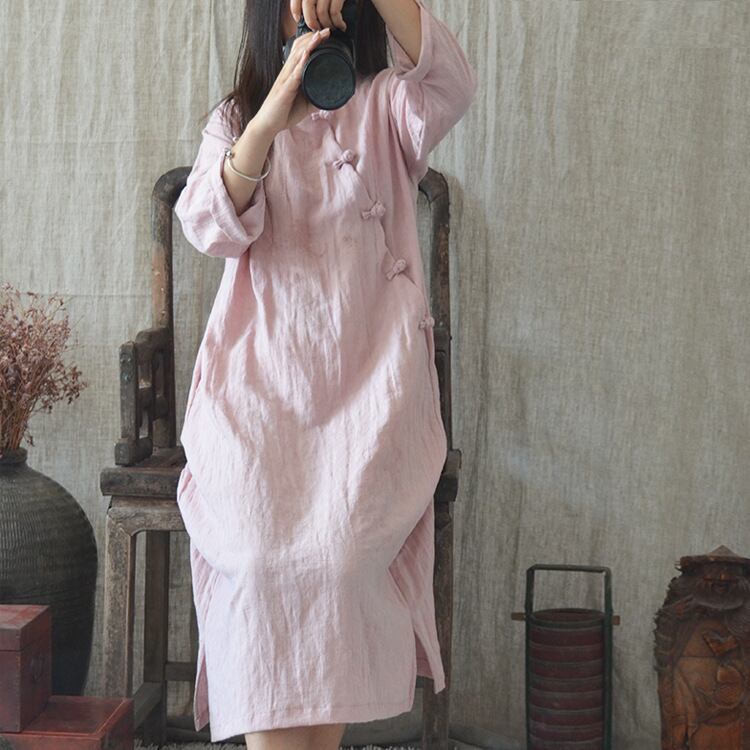 スタンダードロングジャカードルーズ コットン レトロ スカート Oネック Yiranxuaディースワード53791972859