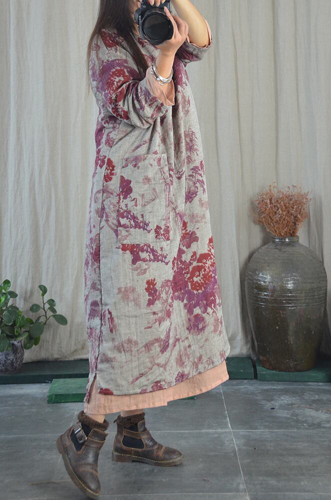 Vネックプリントロングスプリングオータム コットン 春物 秋物 スカート Yiranxuaディースワード83762324662