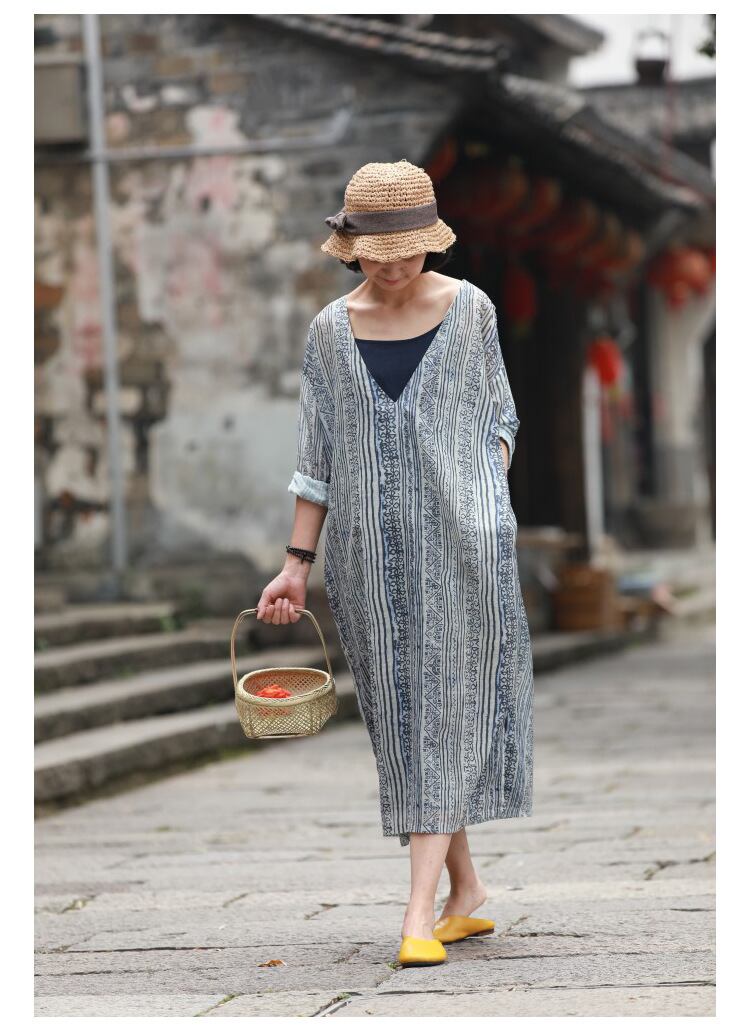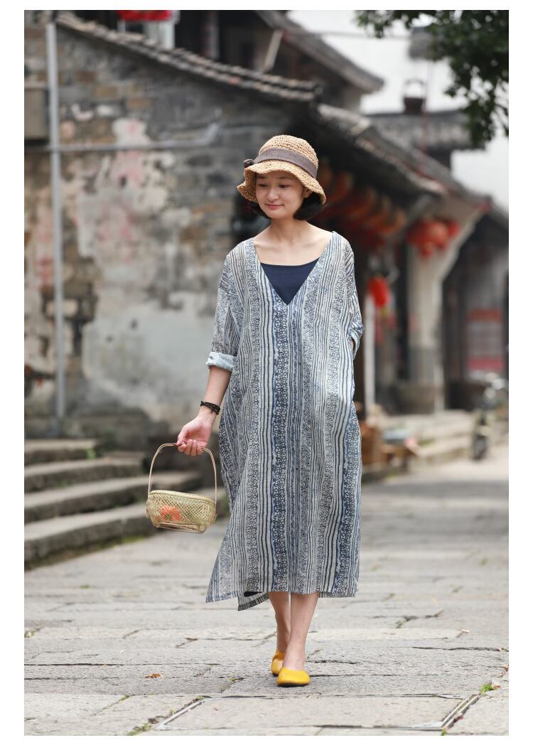 プリントVネックドレス ロングガウンルーズスカート 大きめサイズ シルク Yiranxuaディースワード25738264455