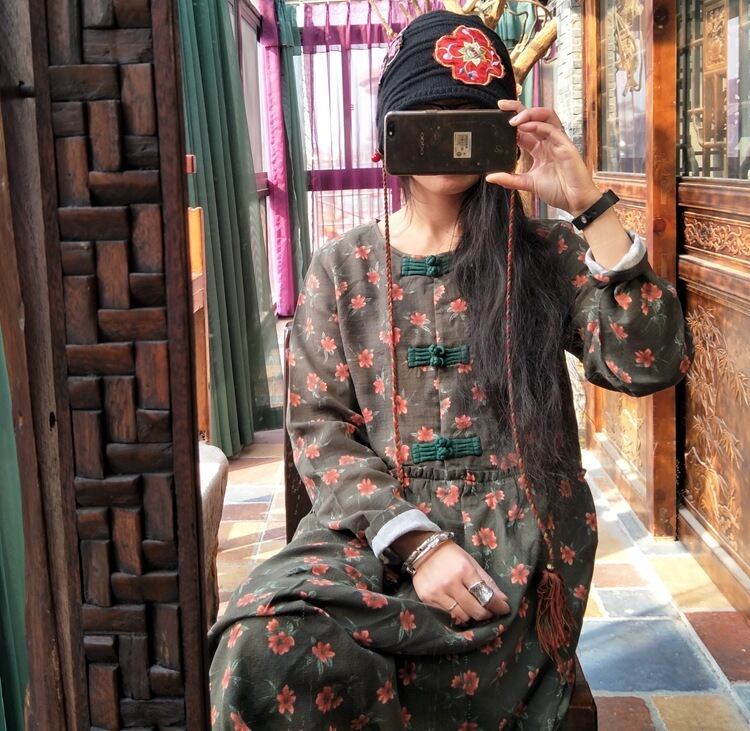 スプリングスタンダードダブルFlowerデザイン ルーズドレス レトロ 春物 フラワーデザイン Yiranxuaディースワード61864725024