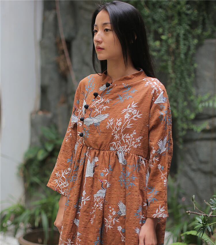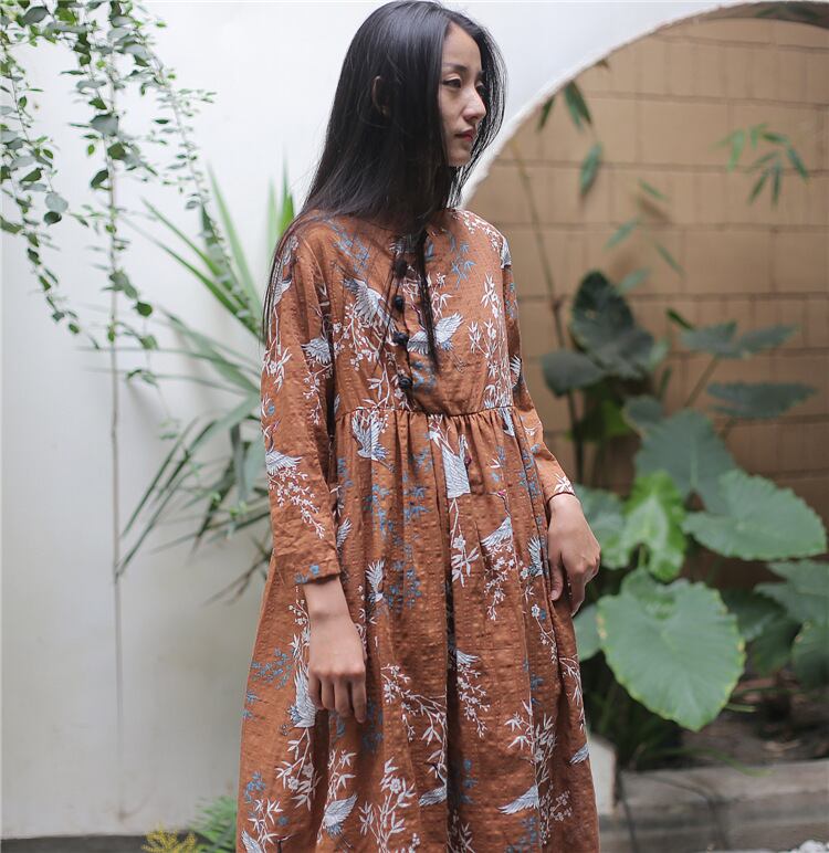 サマープリント柄ハイウェストウェストスタンダードボタンドレス レトロ 夏物 Yiranxuaディースワード26906584970