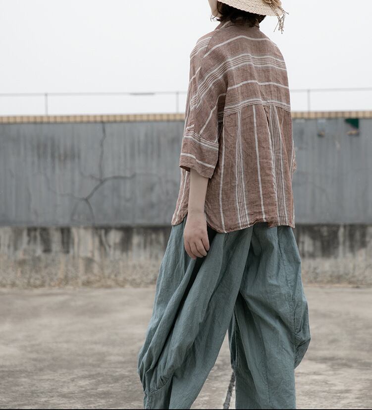 スプリングサマールーズカジュアルパンツ プリーツ コットン 春物 夏物 ショーツ ブルマー Yiranxuaディースワード1749260820