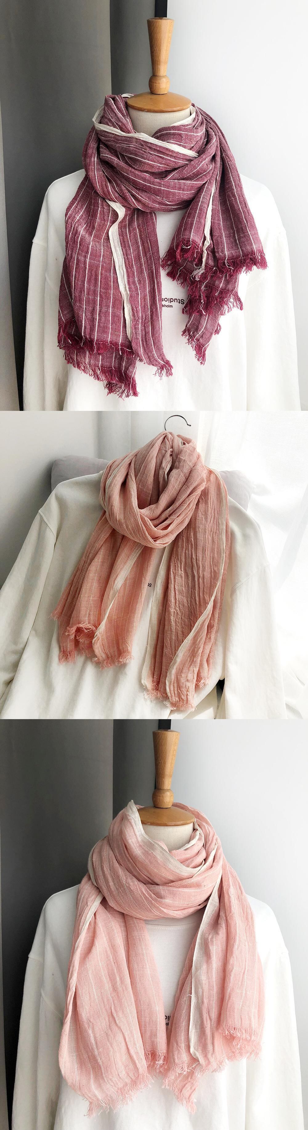 スプリングオータムストライプスカーフ コットン 春物 秋物 Yiranxuaディースワード24699426506