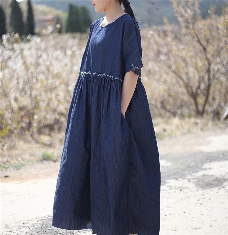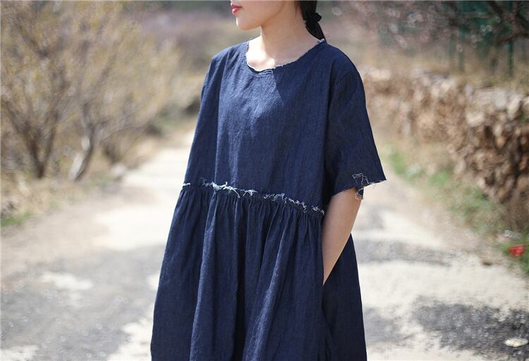 ダークブルードレス ショート 半袖 ハーフスリーブ Yiranxuaディースワード71303354604