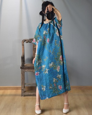スタイルスリット自然派ルーズワンピースドレス スカート Yiranxuaディースワード62146943331